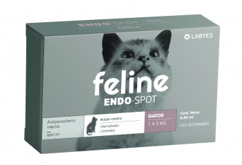 Feline Endospot, antiparasitario interno de aplicación spot-on. Su efectiva formulación elimina los parásitos internos que frecuentemente afectan a los gatos. La Ivermectina, lactona macrocíclica con potentes efectos contra nematodes y ácaros de la sarna. El Praziquantel, derivado sintético de la isoquinolina-pirazina con actividad frente a trematodes y cestodes.
