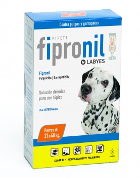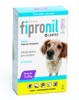 Fipro, pipeta antiparasitaria contra pulgas y garrapatas, con efecto adulticida por contacto.