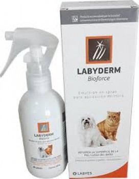 - Labyderm Bioforce está indicado para ser utilizado en forma habitual, luego del baño de perros y gatos, a fin de contrarrestar el daño producido durante el lavado y el secado del animal. Además, mejora la presentación final del trabajo estético, al reducir la estática, mejorar la sedosidad y el brillo del pelo.