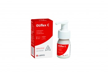 Otiflex C, otológico con acción antibacteriana, antimicótica, acaricida y antiinflamatoria de uso tópico. Formulado para el tratamiento de afecciones iniciales y/o recurrentes del oído. Su composición integra Ciprofloxacina, antibiótico de amplio espectro no ototóxico; Ketoconazol, antimicótico de gran efectividad contra levaduras y dermatofitos y Prednisolona, antiinflamatorio esteroide de acción inmediata. En sus excipientes se encuentran el ácido trisetilenodiaminotetracético (EDTA-tris) y el aceite de sésamo. El EDTA-tris gracias a su poder quelante y efecto buffer, potencia la acción de la Ciprofloxacina, desestabiliza las membranas de las bacterias y los Biofilms que estas forman. El aceite de sésamo es un acaricida natural, con propiedades antioxidantes y emolientes, lo cual permite restituir el epitelio del conducto auditivo.